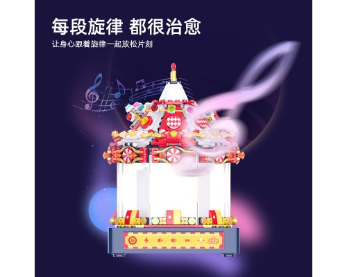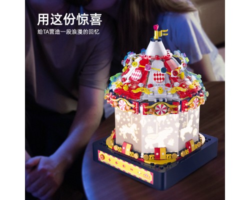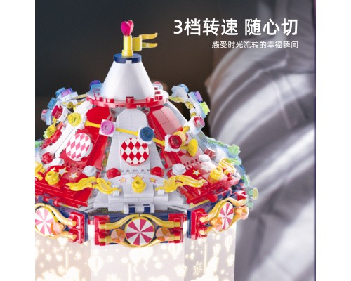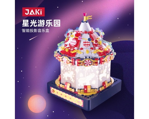 JAKI佳奇積木星光游樂園電動旋轉音樂盒八音盒益智拼裝擺件禮物