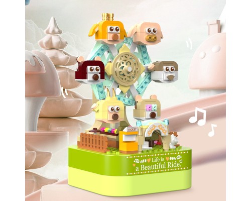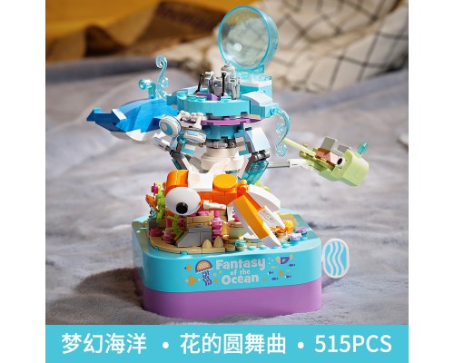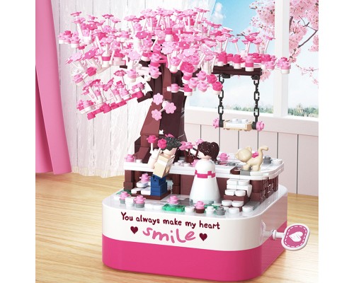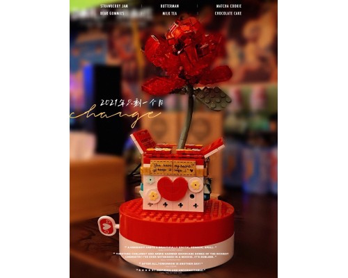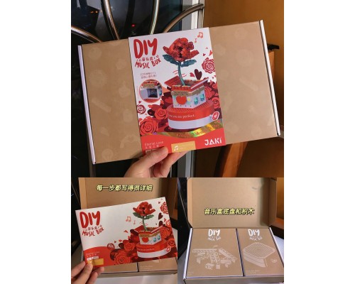 JAKI佳奇積木音樂盒女神節浪漫禮物玫瑰花八音盒送女生擺件拼裝
