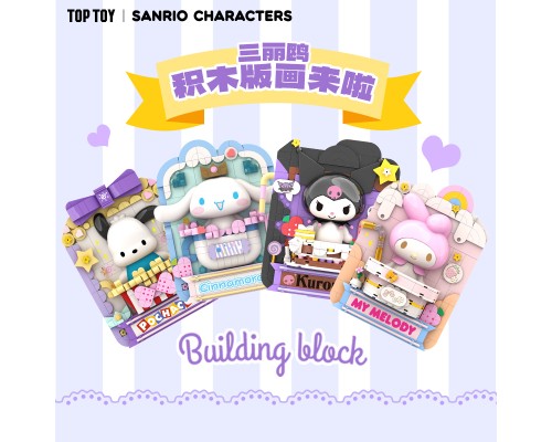 TOPTOY中國積木三麗鷗版畫女生禮物酷洛米美樂蒂拼裝玩具模型