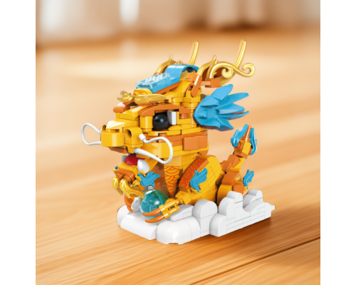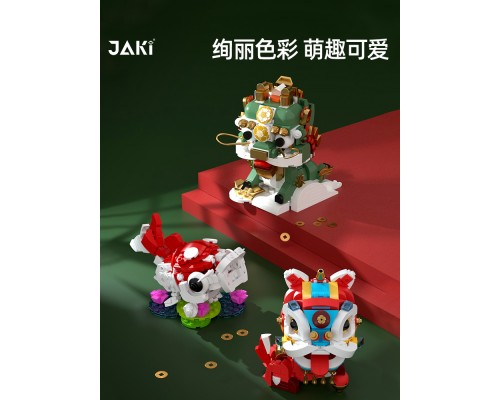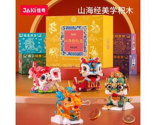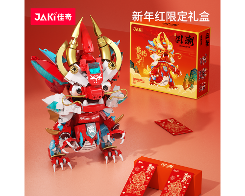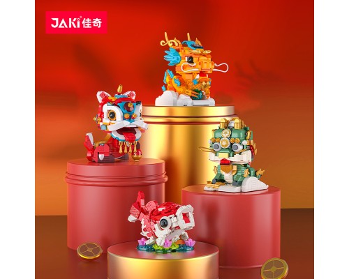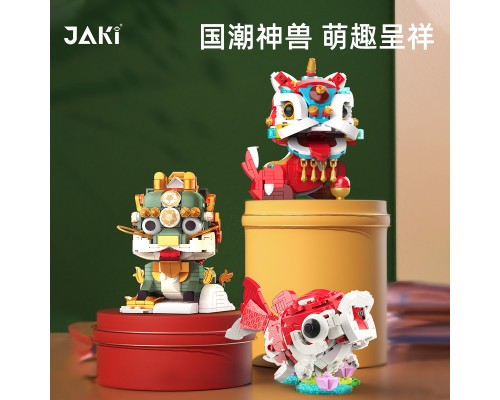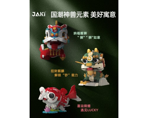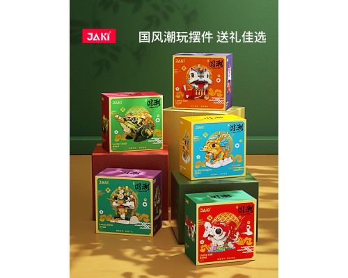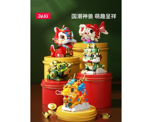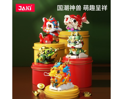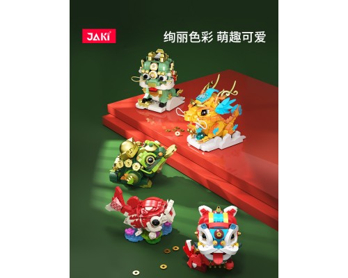 JAKI佳奇積木國潮神獸麒麟中國錦鯉醒獅祥龍擺件模型玩具新年禮物