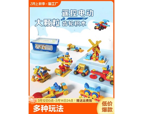 大顆粒積木電動機械齒輪科教編程益智拼裝玩具